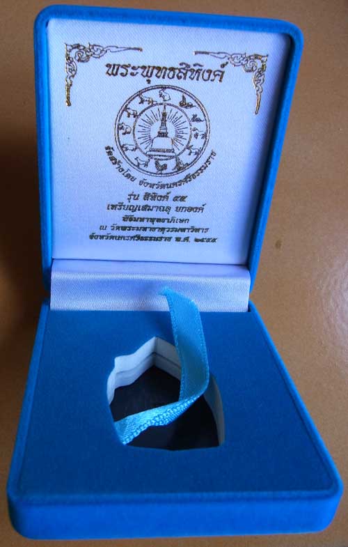 เหรียญพระพุทธสิหิงค์ เสมาฉลุยกองค์ รุ่นสิหิงค์ 55 เนื้อทองระฆังลงยาสีขาว เลขสวยสองหลัก 20 สภาพสวยพร้อมกล่องเดิม