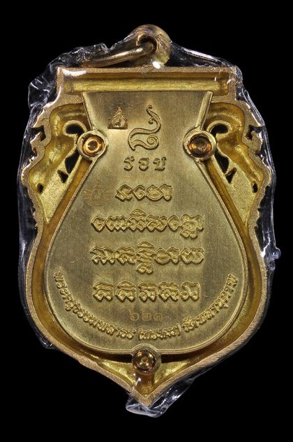 เหรียญเสมาฉลุ ลป.ทวด พ่อท่านพรหม วัดพลานุภาพ อายุ 8 รอบ พ.ศ.2555 เนื้อทองระฆังลงยาราชาวดีสีแดง หมายเลข 621 สภาพสวย พร้อมกล่องเดิม
