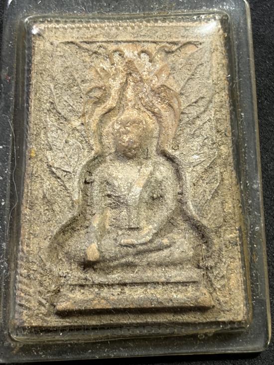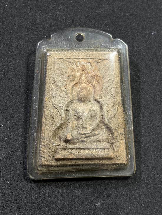 พระกรุวัดทับผึ้ง ต.ทับผึ้ง อ.ศรีสำโรง จ.สุโขทัย พิมพ์พระพุทธชินราช เนื้อดิน เลี่ยมพลาสติกเก่า ปี2473