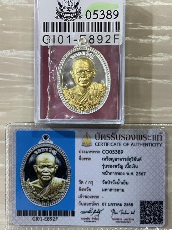 (เคาะแดง6500) บัตรสมาคม&ที่1สมาคม เหรียญรูปไข่หลวงพ่อสุริยันต์ รุ่นของขวัญ
