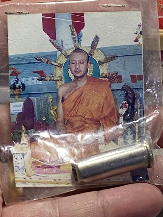 ตะกรุดปลอกลูกปืนขนาดประมาณ1นิ้วและรูปถ่าย หลวงพ่อชำนาญสวยมากครับยังอยู่ในถุงซีลเดิมๆไม่ผ่านการใช้ครับ รอยจานเต็มสูตร เครื่องหายากของหลวงพ่อ ยุคต้นต้น น่าใช้น่าเก็บครับ