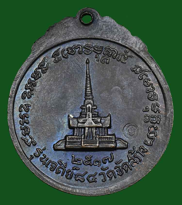 เหรียญกลมสร้างเจดีย์ 84 เนื้อทองแดง ปี 2517 หลวงปู่แหวน สุจิญโณ วัดดอยแม่ปั๋ง