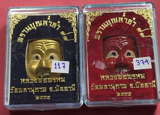 หน้ากากพรานบุญ รุ่น ล่ำซำ99 พ่อท่านพรหมวัดพลานุภาพ จ.ปัตตานี ปี2558 เนื้อว่าน (หน้าแดง+หน้าทอง) พิมพ์ใหญ่
