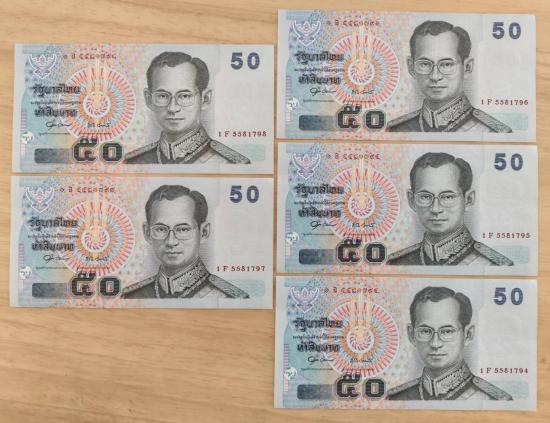 ธนบัตร 50 บาท เลขเรียง 5 ฉบับ