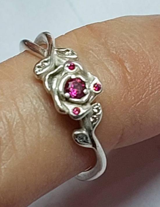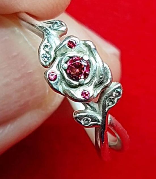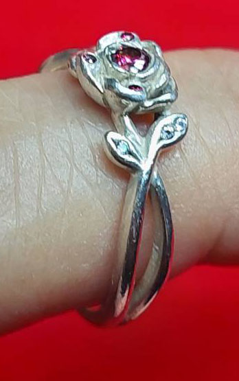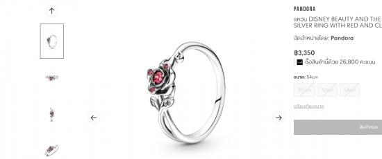 แหวน Pandora Disney Beauty and the Beast Rose Ring ซึ่งทำจากเงินสเตอร์ลิง ประดับด้วยเพชรคิวบิกเซอร์โคเนียสีแดงและสีใส