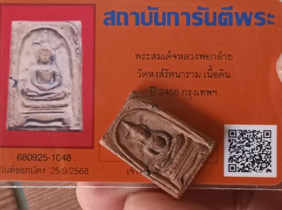 เคาะเดียวแดง++พระสมเด็จหลวงพ่อกล้าย วัดหงส์รัตนาราม เนื้อดิน ปี 2468 กรุงเทพฯ มาพร้อมรับรองพระแท้ครับ
