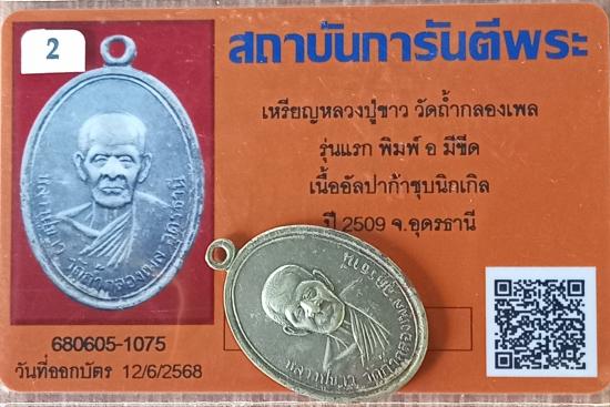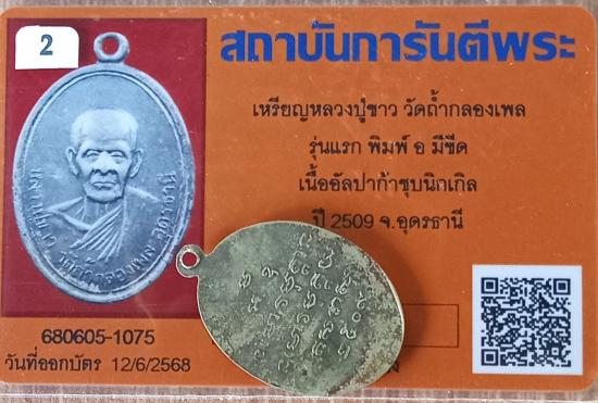 เคาะเดียวแดง++เหรียญรุ่นแรก หลวงปู่ขาว วัดถ้ากองเพล ปี 2509 อัลปาก้า อ มีขีด สวยเดิมพร้อบัตร