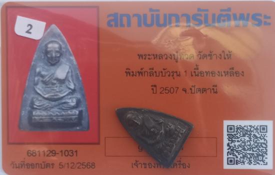 เคาะเดียวแดง++พระหลวงปู่ทวด วัดช้างให้ พิมพ์กลีบบัวรุน 1 เนื้อทองเหลือง ปี 2507 สวยเดิมพร้อมบัตรรับรองพระแท้ครับ