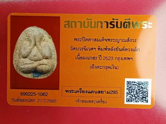 ภาพในบัตรรับรองพระแท้จากสถาบันการันตีพระ