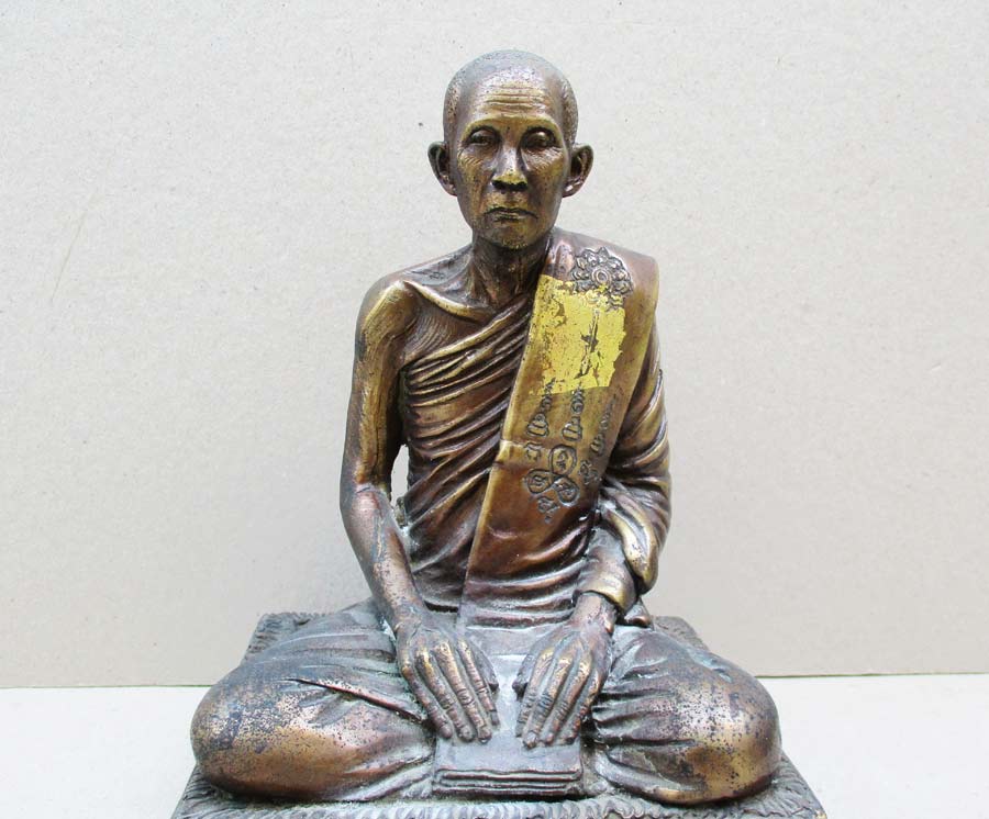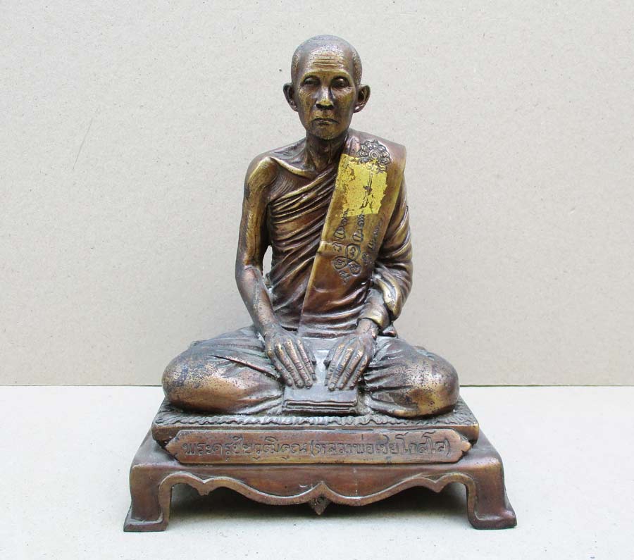 พระบูชา พระครูชัยวุฒิคุณ ( หลวงพ่อเชย โกสโล ) วัดขนอน จ.อยุธยา รุ่น ปฏิสังขรณ์ พ.ศ.2544 หน้าตัก 5 นิ้ว เนื็อโลหะรมมันปู ผิวแห้งหิ้ง !!