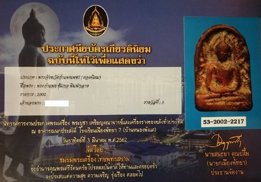 ซุ้มกอ พิมพ์กลาง เลี่ยมทองคำแท้ พร้อมใบประกาศรางวัลที่ 3 ขออนุญาตไม่ส่งพระตรวจสอบกับการันตีพระ เนื่องจากเคยส่งออกใบรับรองแล้วแล้วทางการันตีพระไม่ออกผล อ่านให้เข้าใจจะได้ไม่เสียเวลาทั้งสองฝ่าย
