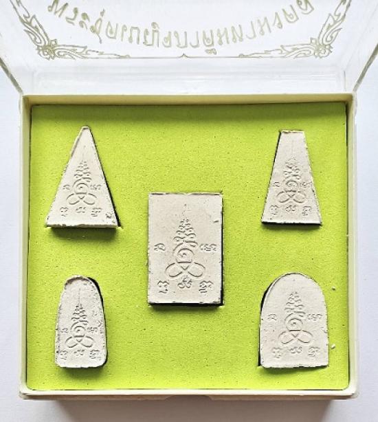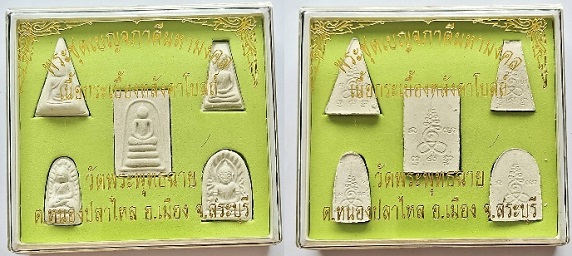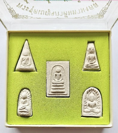 พระชุดเบญจภาคีมหามงคล เนื้อกระเบื้องหลังคาโบสถ์ วัดพระพุทธฉาย จ.สระบุรี