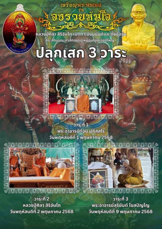 ปลุกเสก 3 วาระ(พ.ค.๖๘) วาระ1.พระอาจารย์ต้อม 2.หลวงปู่มหาศิลา 3.หลวงพ่อสุริยันต์