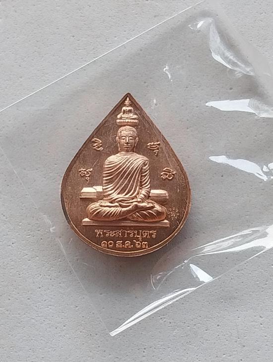 เหรียญหยดน้ำหลังพระสารีบุตร หลวงพ่อไพบูลย์ สุมังคโลปี๒๕๖๓ เนื้อทองแดงกล่องเดิม