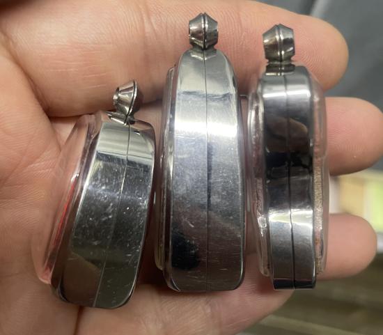 ชื่อพระเครื่อง กรอบพระสแตนเลสมือสอง....ใส่รูปหล่อ/หลวงปู่ทวด/มเหศวร/จำนวน3ใบ...เคาะเดียวแดง100