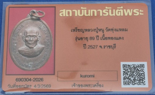 เหรียญหลวงปู่หนู วัดทุ่งแหลม รุ่นฉลองอายุ 89 ปี จ.ราชบุรี เนื้อทองแดง ปี พ.ศ. 2527