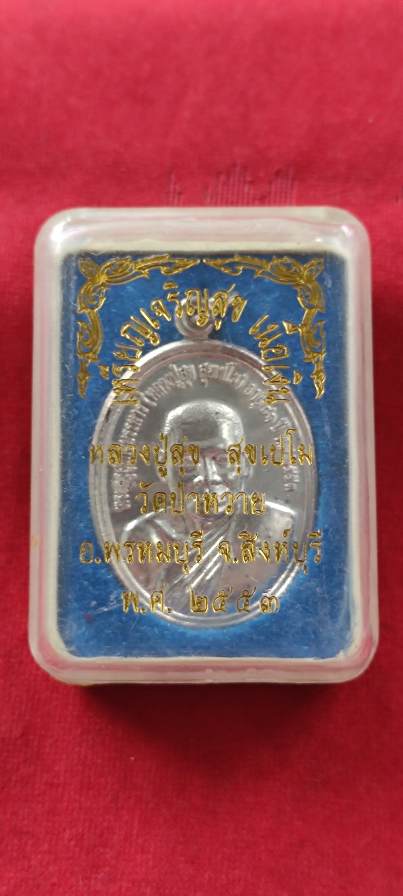 เหรียญเจริญสุข หลวงปู่สุข สุขเปโม วัดป่าหวาย จ.สิงห์บุรี เนื้อเงินปี2553 เลข258 น้ำหนัก16.05กรัมพร้อมกล่องครับ
