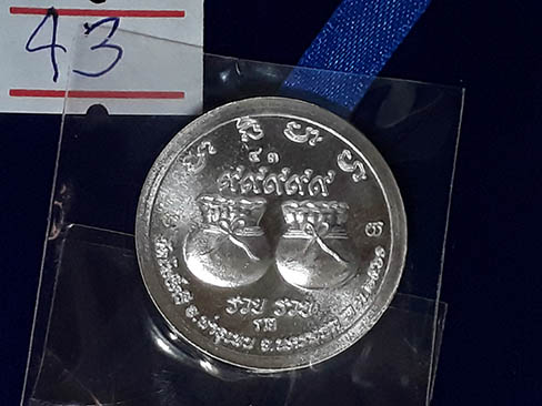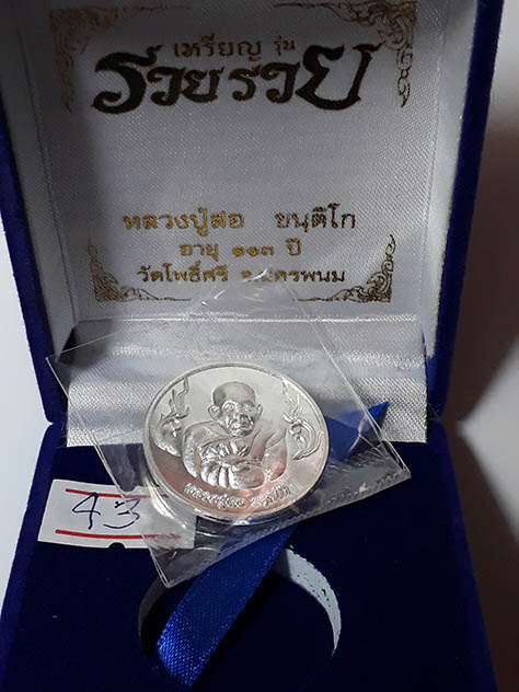 เหรียญโภคทรัพย์รวย รวย หลวงปู่สอ วัดโพธิ์ศรี เนื้อเงินเลข43 พร้อมกล่องครับ