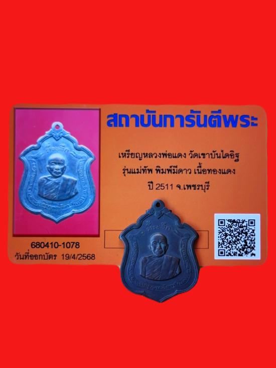 เหรียญหลวงพ่อแดง วัดเขาบันไดอิฐ รุ่นแม่ทัพ พิมพ์มีดาว เนื้อทองแดง ปี2511 จ.เพชรบุรี มาพร้อมบัตรรับรองพระแท้ สภาพผิวหิ้งสวยเดิม น่าสะสมบูชา พิจารณาให้ชอบแล้วเชิญเคาะครับ
