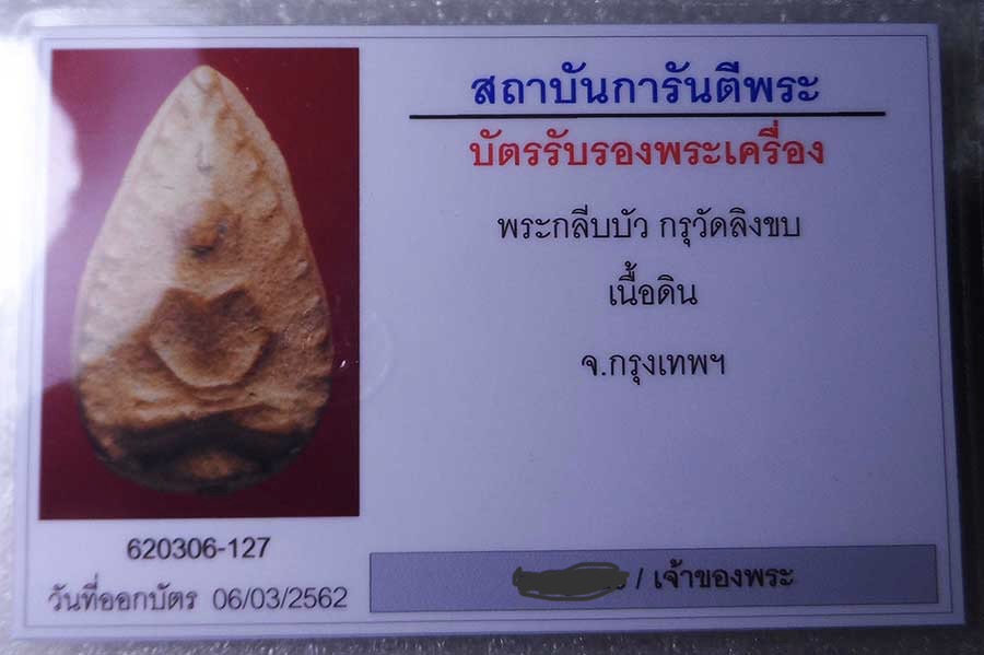 พระกลีบบัว กรุวัดลิงขบ เนื้อดิน จ.กรุงเทพฯ พร้อมบัตรรับรอง