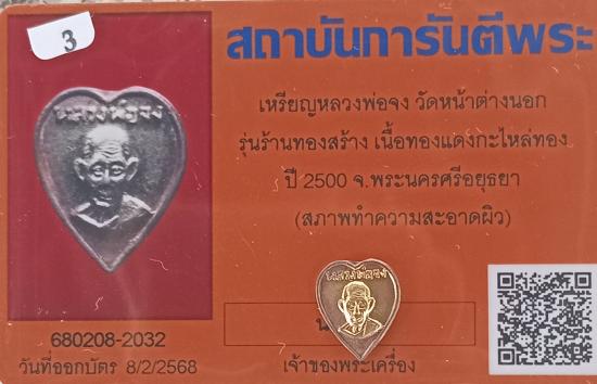 เคาะเดียวแดง+++เหรียญรูปหัวใจหลวงพ่อจง วัดหน้าต่างนอก พิมพ์ผ.ผึ้ง เนื้อทองแดงกะไหล่ทองปี2500สภาพสวยเดิมๆมาพร้อมบัตรรองครับ