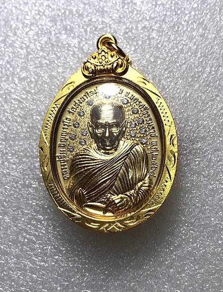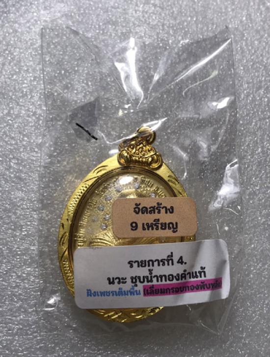- 120 - เหรียญ "" ปลดหนี้พันล้าน"" หลวงปู่อิ่ม ปัญญาวุโธ วัดทุ่งนาใหม่ นครศรีธรรมราช ** เนื้อนวะ ชุดน้ำทองคำแท้ ฝังเพชรเต็มพื้น ** เลี่ยมพรอบทองพับหลัง ตอก 555