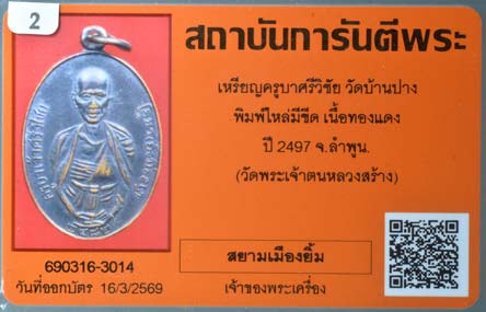 เหรียญครูบาศรีวิชัย วัดบ้านปาง ปี2497 วัดสวนดอกสร้าง หูติ่ง |