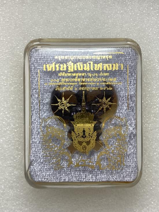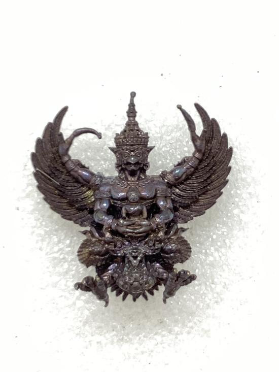 พญาครุฑเศรษฐีเงินไหลมา วัดพระมหาธาตุ วรมหาวิหาร จ.นครศรีธรรมราช พมพ์เล็ก สูง 3 ซ.ม. เนื้อทองกายทิพย์รมมันปู กล่องเดิม ( แจกในพิธี )