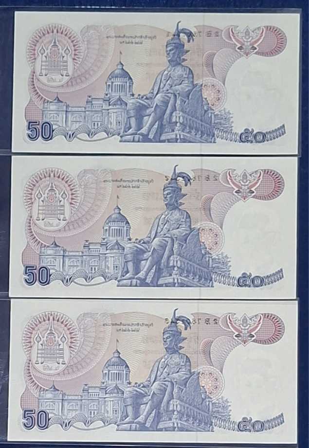***ธนบัตรแบบ 13 ในหลวงรัชกาลที่ 9 ชนิด 50 บาท โรงพิมพ์ธนาคารแห่งประเทศไทย จำนวน 3 ใบ ***ธนบัตรสภาพดี ไม่ผ่านการใช้ ***UNC***