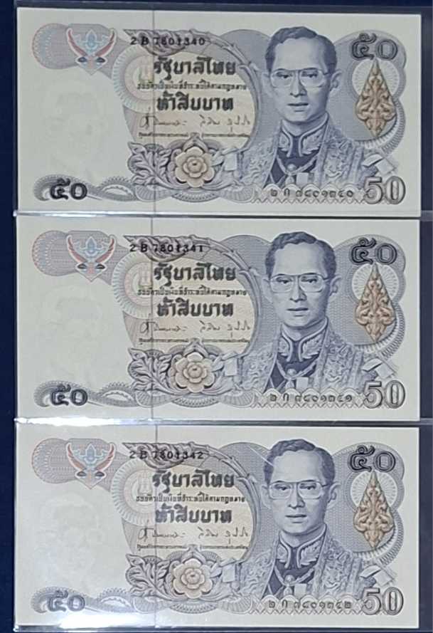 ธนบัตรแบบที่ 13 ในหลวงรัชกาลที่ 9 ชนิด 50 บาท จำนวน 3 ใบ โรงพิมพ์ธนาคารแห่งประเทศไทย ***ธนบัตรสภาพดี ไม่ผ่านการใข้งาน **UNC**พิจารณาตามภาพประกอบ***