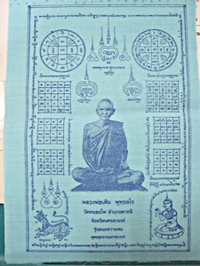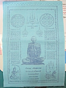 ๑๐๙- ผ้ายันต์ ลพ.เดิม วัดหนองโพธิ์ นครสวรรค์ รุ่นชนะความจนปี๕๓ สีฟ้า ขนาด๖x๘.๕นิ้ว สร้างพุทธอุทยานนครสวรรค์ รับประกันครับ