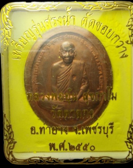 *****เหรียญรุ่นสรงน้ำ พิมพ์ใหญ่ ตัดขอบกว้าง หลวงพ่ออุ้น วัดตาลกง เนื้อทองผิวไฟ ปี2550 สภาพสวยเดิมๆ+กล่องตามรูปครับ*****