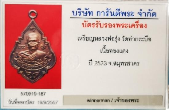 **เคาะเดียว** หลวงพ่อรุ่ง วัดท่ากระบือ 2533 พิมพ์ใหญ่ ทองแดง สภาพสวย ล้มแชมป์ เลี่ยมทอง