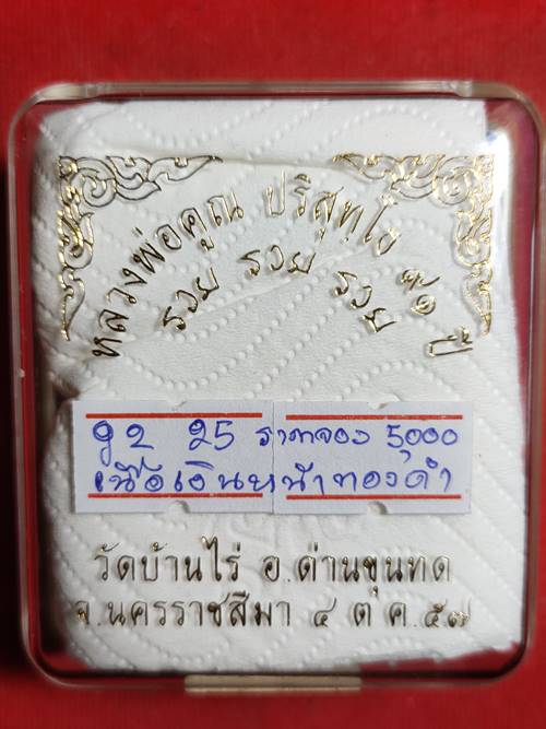 เหรียญหลวงพ่อคูณ ปริสุทโธ 91 ปี รุ่น รวย รวย รวย ออกวัดบ้านไร่ ปี 2557 เนื้อ เงินหน้าทองคำ หมายเลข 25 ราคาจอง 5000 บาท สภาพสวย เคาะเดียวแดง