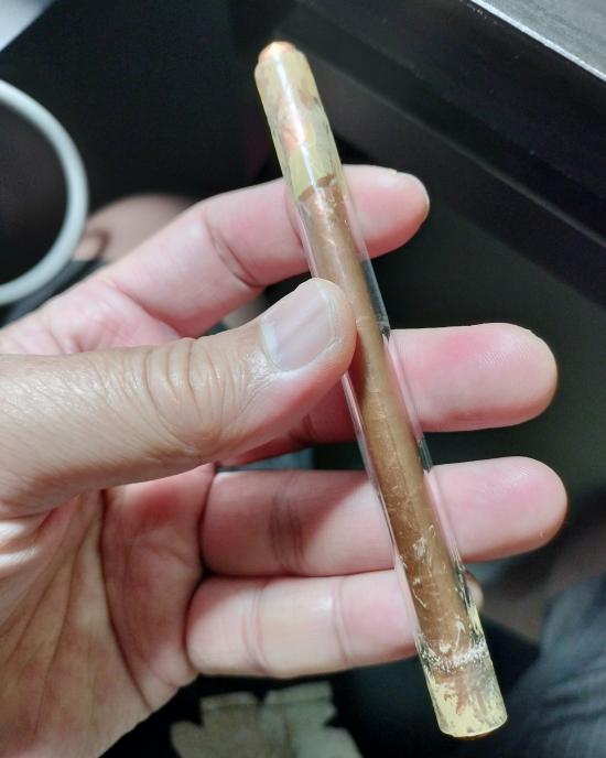 จัดส่งพร้อมปลอกพลาสติกเดิม แต่ไม่มีหัวหุ้มเงินเพราะเจ้าของเดิมแกะขายไปแล้ว และเอาเทปกาวปิดหัวท้ายเก็บไว้ พลาสติกเลยเปื้อนเทปกาวนิดหน่อย แต่ตัวตะกรุดสวยเดิมครับ น่าจะเป็นตะกรุดอิติปิโสสะกดไตรภพ หายากครับ