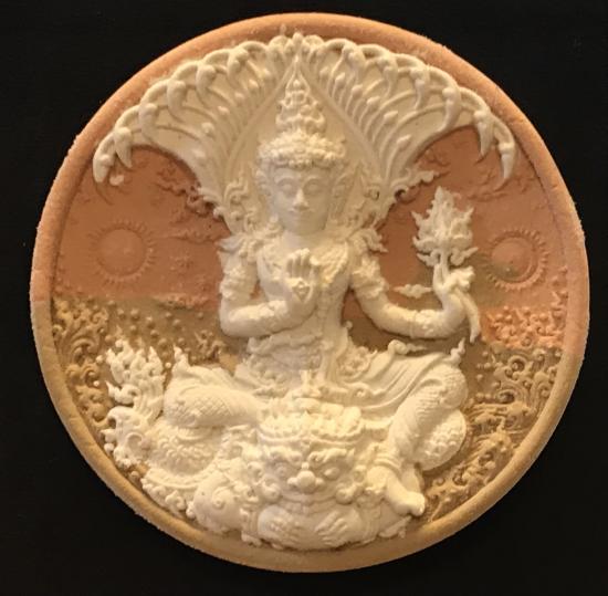 ออกแบบโดย อ.เฉลิมชัย โฆษิตพิพัฒน์ ศิลปิลแห่งชาติ สาขาจิตรกรรม จัดสร้างโดยมูลนิธิศิลปธรรม เมื่อ 12 ธ.ค. 2550 ทุกองค์จะตอกโค๊ดที่ขอบด้านล่าง