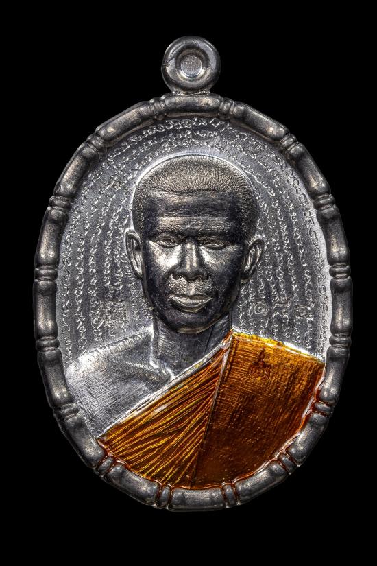 เนื้อเหล็กเปียก ลงยาจีวร วัดน้อยสามัคคีธรรม สร้างน้อย รุ่นเด่นดวงดี จารเต็มหน้าหลังลายมือพระอาจารย์เด่นดวง พร้อมบัตรรับรองสมาคมและใบประกาศงานสมาคมศูนย์ราชการ