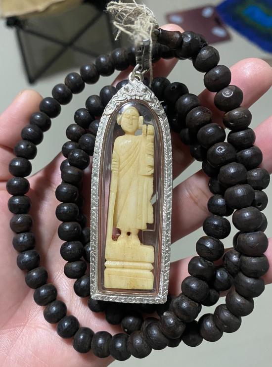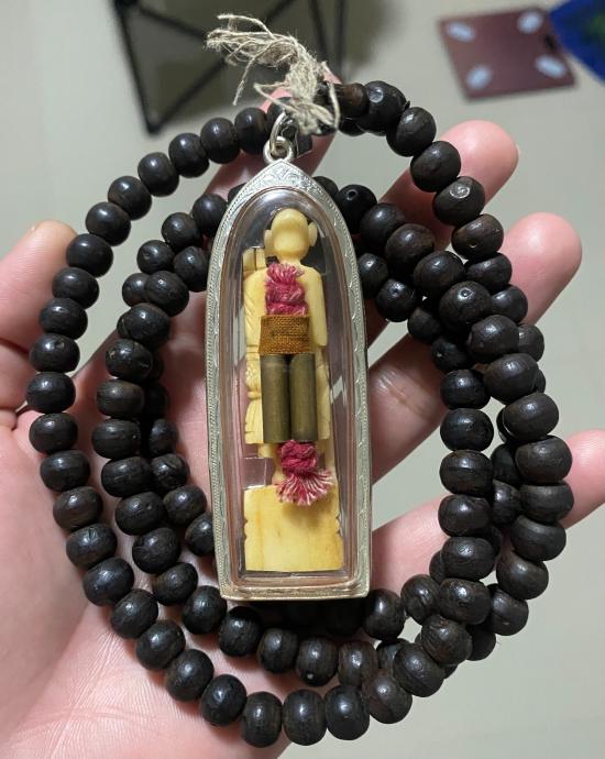 เปิดประคำหวายหิน หลวงปู่ครูบาวงศ์ วัดพระบาทห้วยต้ม ลี้ ลำพูน และ พระสีวลี งาแกะ ด้านหลังมีตะกรุดคู่ (ประคำมีฝังตะกรุดและรอยจารและพระสีวลีมีรอยจาร) พร้อมเลี่ยมเงิน เจ้าของเดิมได้จากครูบาชัยวงศ์