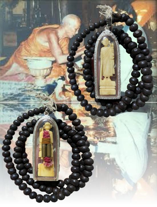 เปิดประคำหวายหิน หลวงปู่ครูบาวงศ์ วัดพระบาทห้วยต้ม ลี้ ลำพูน และ พระสีวลี งาแกะ ด้านหลังมีตะกรุดคู่ (ประคำมีฝังตะกรุดและรอยจารและพระสีวลีมีรอยจาร) พร้อมเลี่ยมเงิน