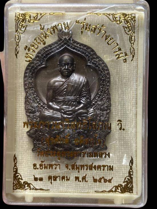 *****เหรียญนั่งพานสร้างบารมี หลวงพ่อมหาสุรศักดิ์ เนื้อชนวน สภาพสวยเดิมๆ+กล่องเดิมตามรูปครับ*****