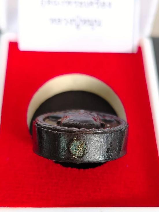 พระผง ดวงเศรษฐี รุ่นแรก หลวงปู่คีบ ธีรปัญโญ เนื้อดินเผาอุดผงพระเครื่องหลวงปู่หมุน หมายเลข ๑๐๑ . พร้อมกล่องเดิมครับ