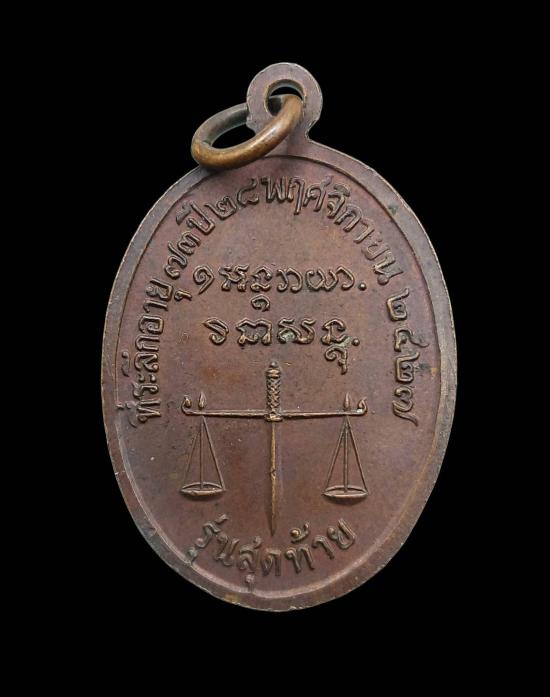 เหรียญหลวงพ่อเกษม เขมโก รุ่นสุดท้าย หลังตราชั่ง ปี2527 เนื้อทองเเดง