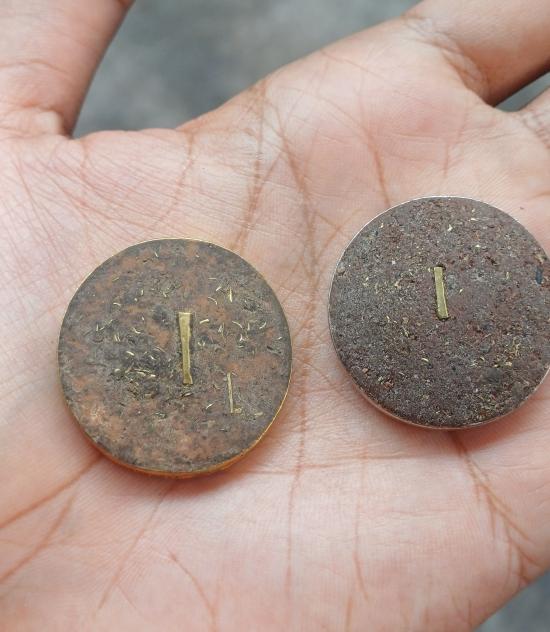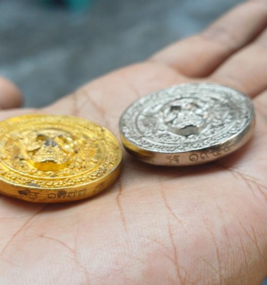 เคาะเดียวเเดง เหรียญหล่อพรายกระซิบ พระอาจารย์ประสูติ วัดในเตา จังหวัดตรัง จำนวน2องค์ กะไหล่ทอง กะไหล่เงิน