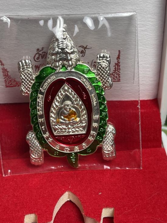 พญาเต่ามังกร รุ่นเจ้าสัวมหาเศรษฐี เนื้อเงิน ลงยาลายธงชาติ วัดห้วยผักชี กำแพงแสน นครปฐม หลวงปู่ปั่นเมตตา อธิฐานจิตปลุกเสก ปี2562