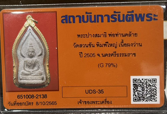 พระปางสมาธิ พ่อท่านคล้าย วัดสวนขัน พิมพ์ใหญ่ เนื้อผงว่าน ปี 2505 จังหวัดนครศรีธรรมราช เลี่ยมทองสั่งทำ%สูง พร้อมบัตรรับรองแค่ทองก็คุ้มละค่ะ