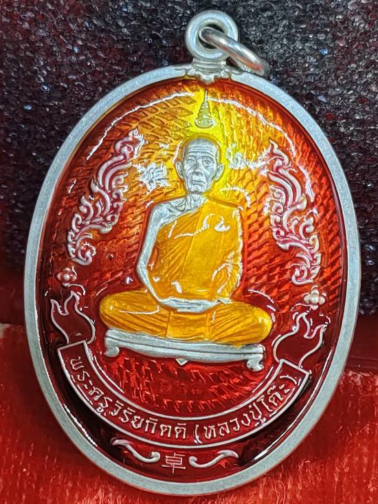 เหรียญย้อนยุครุ่นแรก หลวงปู่โต๊ะ เนื้อเงิน ลงยาเปลวไฟ หลังยันต์ดวง เลข269 ปี2565 ออกวัดถ้ำสิงโตทอง จ.ราชบุรี กล่องเดิม