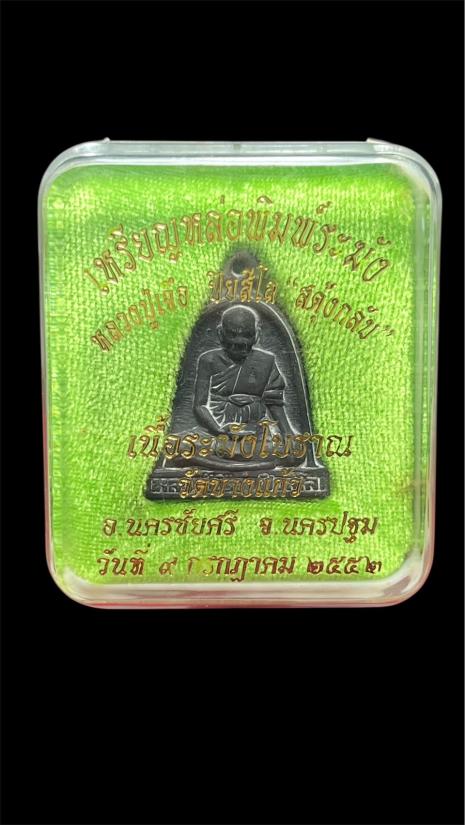 เหรียญหล่อระฆัง สดุ้งกลับ หลวงปู่เจือ ปิยสีโล วัดกลางบางแก้ว จ.นครปฐม ปี 52 เนื้อระฆังโบราณ พร้อมกล่องเดิม