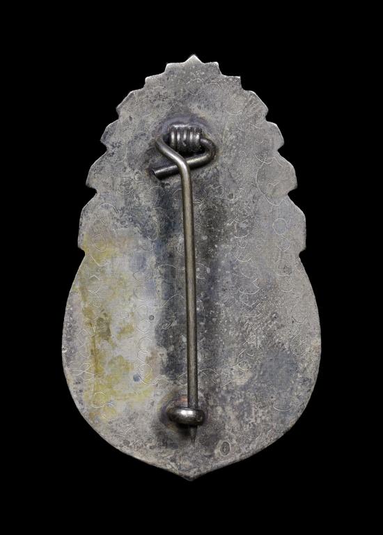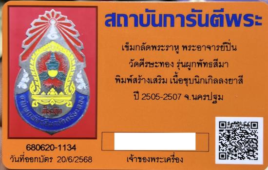 เข็มกลัดพระราหู พระอาจารย์ปิ่น วัดศรีษะทอง รุ่นผูกพัทธสีมา พิมพ์สร้างเสริม เนื้อชุบนิกเกิลลงยาสี ปี 2505-2507 จ. นครปฐม