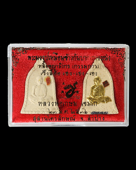 800.00 พระผงรูปเหมือนหลวงพ่อเกษมข้าวก้นบาตรทรงระฆัง หลังพญามังกร(กรรมการ)