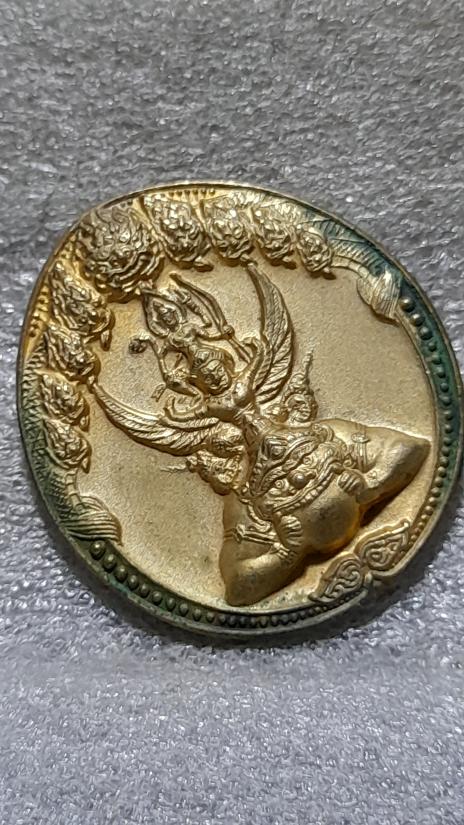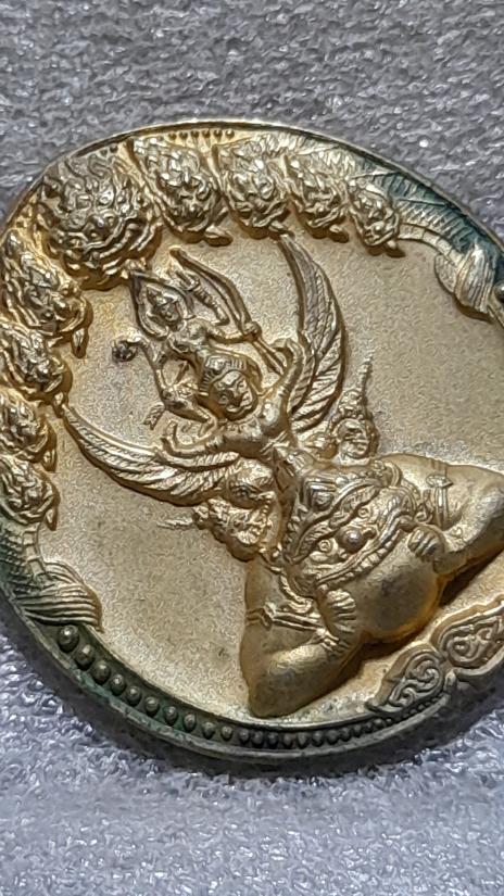 วัดใจเคาะเดียว............เหรียญนารายณ์ทรงครุฑประทับราหู เจ้าคุณธงชัย วัดไตรมิตร ปี48 กะไหล่ทองขัดเงาบางส่วน